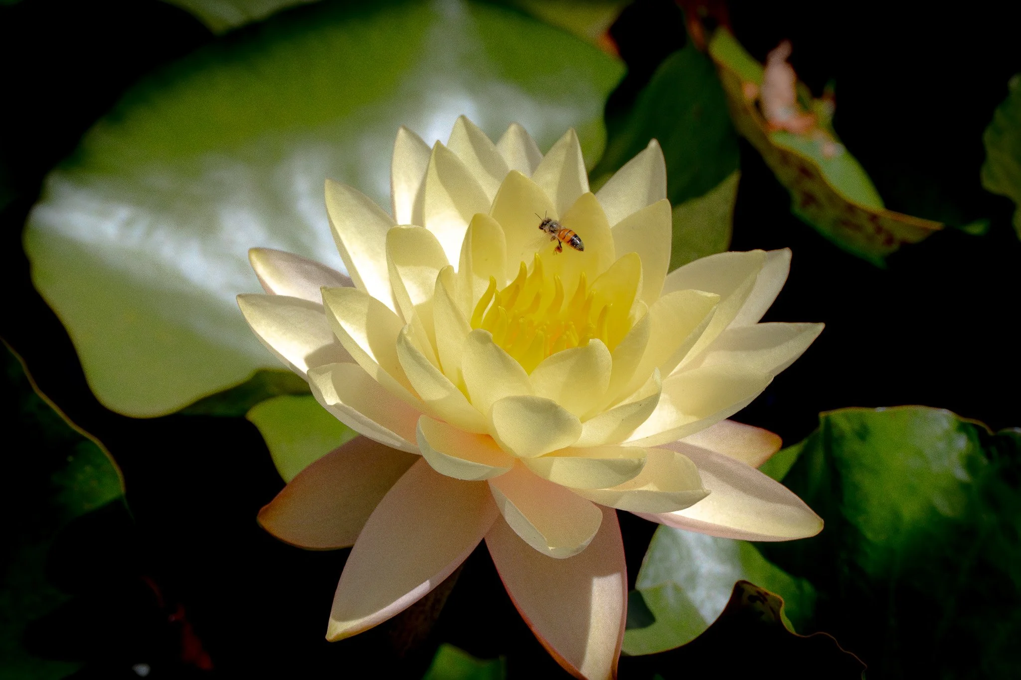 Unlike the lotus, these leaves floated directly on the surface, vast green discs with rims curved upward like shallow trays. Their colour was rich and glossy, the water beneath dark and mirror-like, reflecting each leaf so precisely it felt like seeing double.